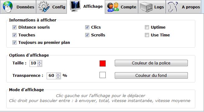 L'Affichage est un moyen de pouvoir toujours avoir un oeil sur vos données. Il reste constamment affiché sur le bureau et est en grande parti paramétrable. Il s'active à partir du Menu.